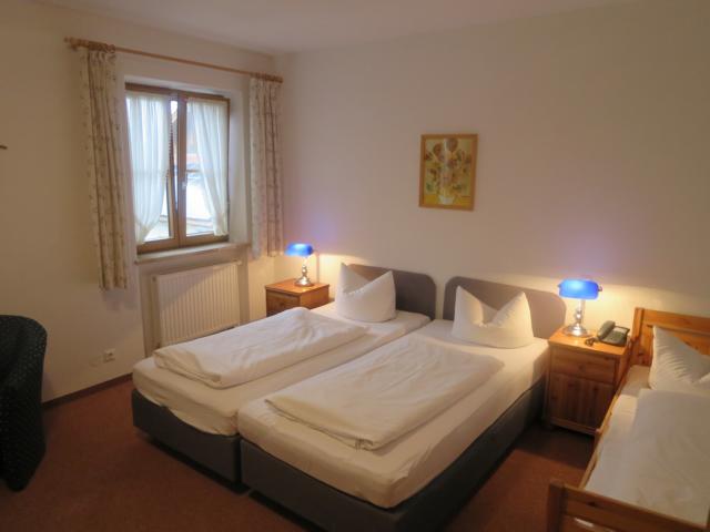 Doppel-, Dreibett- oder Familienzimmer, alle sind mit Dusche / WC,